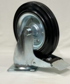 The standard industrial swivel caster with brake is designed for installation on various types of medium-duty carts. This model combines a galvanized metal rim with a rubber tread of 85 Shore A hardness, providing quiet, stable, and long-lasting performance even in demanding working conditions.